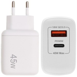 Αντάπτορας Φόρτισης Lamtech USB QC3.0 & USB-C Wall Adapter 45W White (LAM023541)
