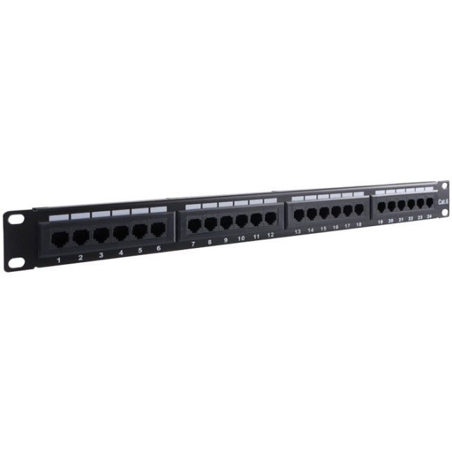 Patch panel κατηγορίας CAT 6 UTP, 24 θυρών σε μαύρο χρώμα.