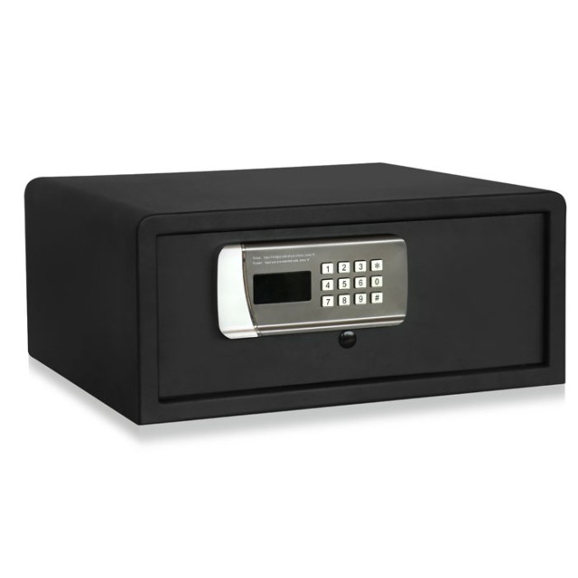 Είναι εξοπλισμένο με ηλεκτρονική κλειδαριά, την οποία μπορείτε να ρυθμίσετε πανεύκολα για να επαναπρογραμματίστε το χρηματοκιβώτιο με τον δικό σας προσωπικό κωδικό πρόσβασης.