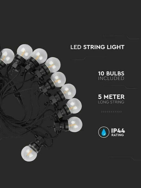 V-TAC Αδιάβροχο φωτιστικό γιρλάντα 5m με 10 λάμπες Filament Θερμό λευκό 3000Κ 212728